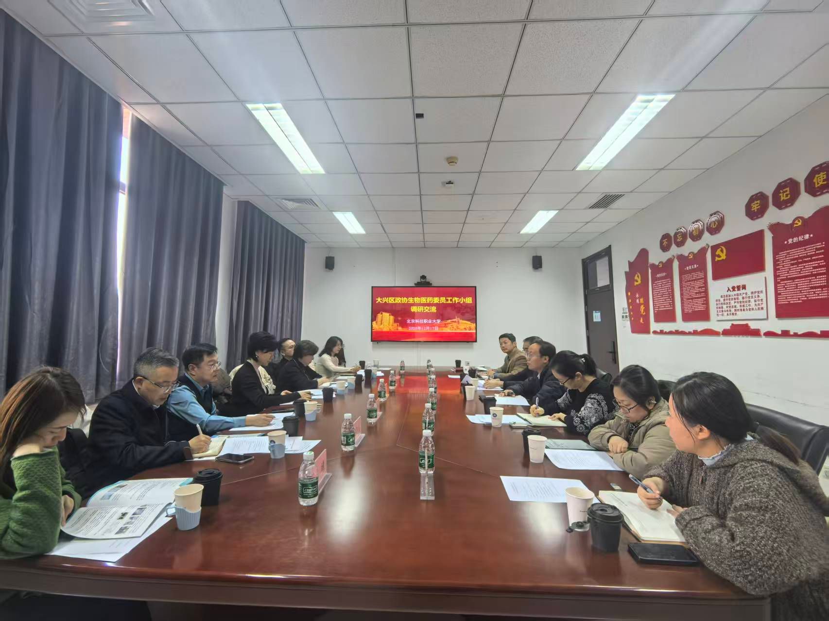 2025年12月17日下午,大兴区政协经济科技农林委员会主任赵连英率生物医药产业协同发展委员工作小组一行到访我校生物工程学院,围绕“聚焦需求适配,推动产业、教育、人才高效协同”主题开展实地调研与座谈交流。学校党委常委、纪委书记贺静、党委统战部副部长倪志勇以及生物工程学院领导班子成员热情接待并陪同调研。