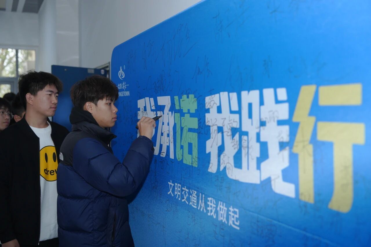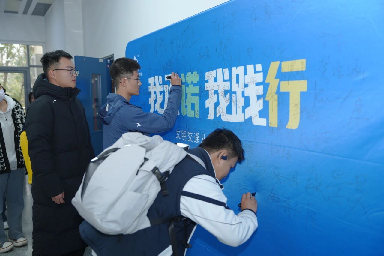 讲座结束后,现场组织了交通安全倡议签名活动。全体参会学生郑重签署姓名,承诺将自觉遵守交通规则,争做校园安全的践行者与宣传员,共同营造“人人关注交通安全、人人遵守交通法规”的良好校园氛围。
