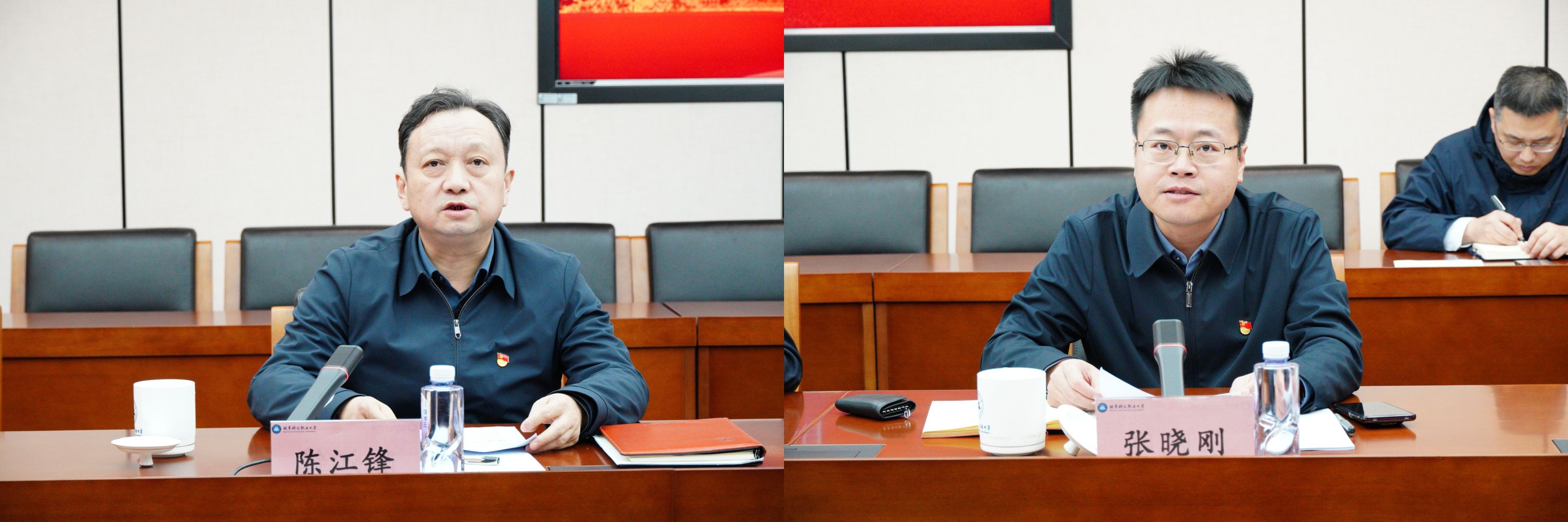 副校长陈江锋、张晓刚结合自己的学习思考和岗位职责作交流发言。陈江锋讲到,党的二十届四中全会是乘势而上、接续推进中国式现代化建设的又一次总动员、总部署。要围绕国家外交大局,以服务“一带一路”倡议和北京建设国家交往中心为重点,建设好“中文工坊”“海外技能培训基地”等品牌,在首都深化职业教育改革、完善高质量教育体系中展现北职大新担当新作为。张晓刚讲到,要深刻认识“十五五”时期的历史方位和重要地位,全面系统领会《建议》的丰富精神内涵,在学深悟透中筑牢思想根基。要切实认识和把握新时代职业教育的新使命,坚持党建引领,重点从体制机制改革、智慧后勤建设、推进美丽校园建设等方面发力,扎实做好高水平、特色化后勤服务保障工作。