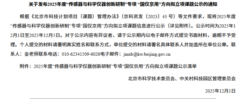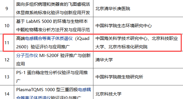 近日,北京市科学技术委员会、中关村科技园区管理委员会公示了2025年度“传感器与科学仪器创新研制”专项“国仪京用”方向的拟立项课题清单。由我校生物工程学院参与申报的“高端电感耦合等离子体质谱仪(iQuad 2600)验证评价与应用推广”重大专项课题成功入选,标志着我校在高端科学仪器验证与应用领域的科研实力获得重要认可。