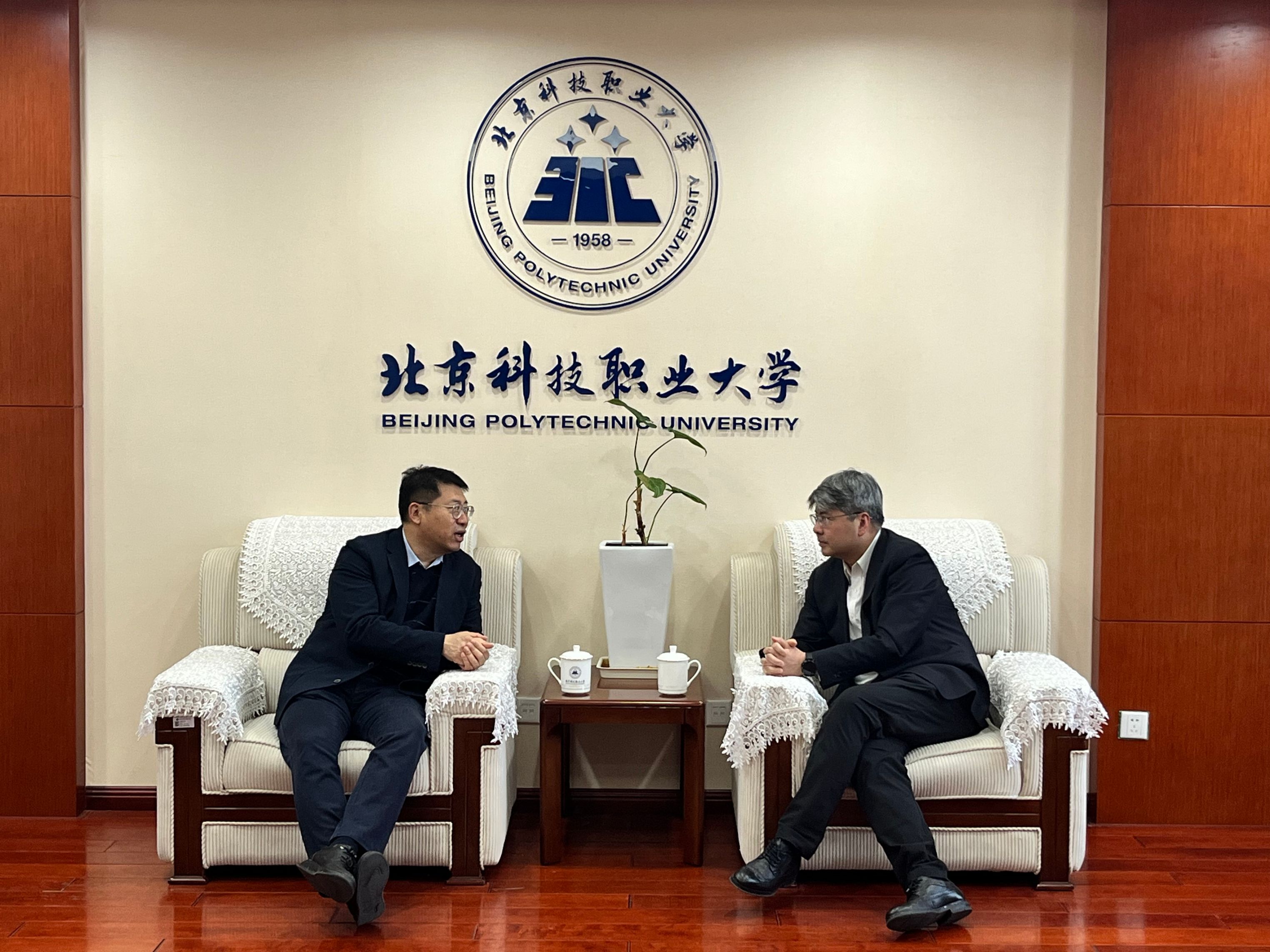 交流中,双方围绕深度推进产教融合、落实高技能人才集群培养计划、智慧综合能源工程专业学科建设等议题展开研讨。座谈期间,孟大博详细介绍了中国电力企业联合会及中电联人才测评中心的基本情况,重点阐述了中心在电力行业职业教育发展、学科体系建设、深度产教融合等方面的工作布局与实践成果。王伟对孟大博一行的到来表示热烈欢迎,高度肯定了中电联人才测评中心在电力行业职业教育领域的权威引领作用和突出贡献,并明确表示学校希望与中心深化合作,积极引入综合能源领域先进产教融合范式及优质企业资源,借力行业优势助推相关学科高质量发展,实现学校、行业、企业协同育人。