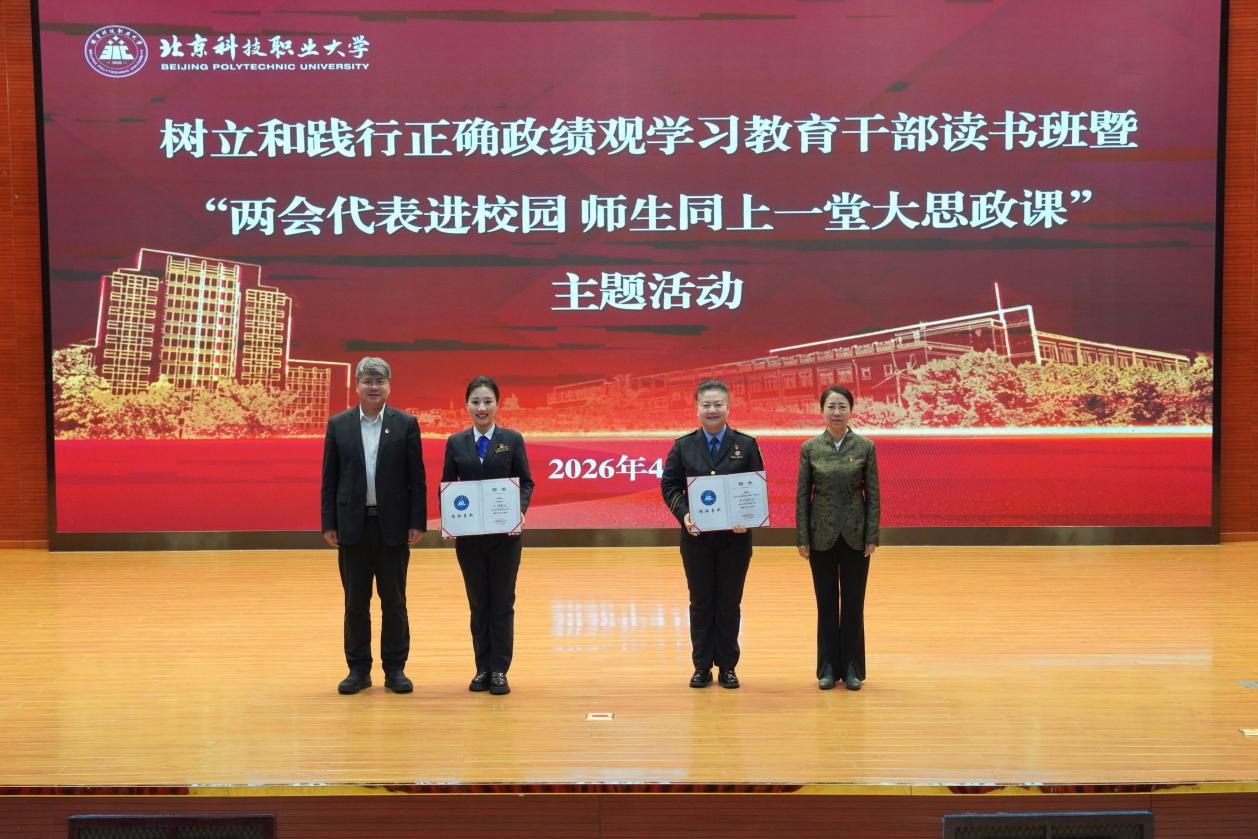 为深入学习贯彻习近平总书记关于树立和践行正确政绩观的重要论述,深入贯彻落实全国两会精神,大力弘扬劳模精神、劳动精神、工匠精神,4月2日下午,学校在图书馆报告厅举办树立和践行正确政绩观学习教育干部读书班暨“两会代表进校园 师生同上一堂大思政课”主题活动,特别邀请第十四届全国人大代表、劳动模范、首都职工匠师何少花和王争作两会精神专题辅导报告。学校领导,全体中层干部,党支部书记、科级干部、教职工党员、学生代表等近300名师生齐聚一堂,共同学习全国两会精神,汲取榜样力量。学校党委副书记刘蓉主持活动。