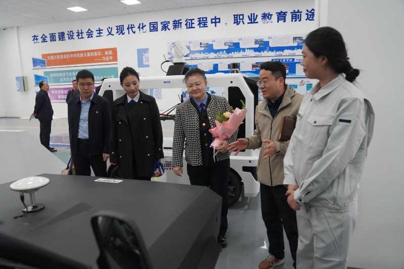 随后,两位代表受邀走进汽车工程学院智能网联汽车产业学院,实地了解学校在智能汽车领域的人才培养模式与课程体系建设情况,并与正在产业学院开展社团活动的学生进行深入交流。交流中,两位代表结合自身在交通领域的成长经历,分享了从一线岗位到全国人大代表的奋斗历程,勉励同学们潜心钻研专业技术,脚踏实地走好每一步。她们中肯地提出,要从细微处着手,在反复实践中锤炼过硬本领,不断追求精益求精,努力成长为自立、自强、自信的高素质技术技能人才。两位代表表示,将带领劳模工作室成员深入学院开展学生党建与思政教育指导工作,共同推动立德树人根本任务落地落实。