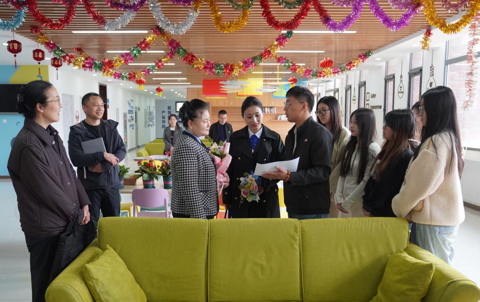 在学生活动中心,两位代表与学校2026年全国两会保障服务志愿者交流座谈,一同观看了服务纪实视频,聆听了学生志愿者以“赓续”“同频”“共进”为关键词的两会故事分享和带队教师的工作回顾。座谈中,何少花、王争为志愿者颁发定制的纪念相册,并与师生亲切交流、合影留念。她们表示,人大代表在人民大会堂履职尽责,师生志愿者们在幕后默默奉献,台前与幕后虽位置不同,却同频共振,共同汇聚成服务保障两会的坚实力量。她们高度评价志愿者们的出色表现,勉励大家以工匠精神传承两会精神,与党和国家事业同向同行,勇担民族复兴大任,在强国建设中书写青春华章。志愿者们深受鼓舞,纷纷表示能与人大代表面对面交流、共同回顾这段与国家大事紧密相连的经历,倍感振奋。