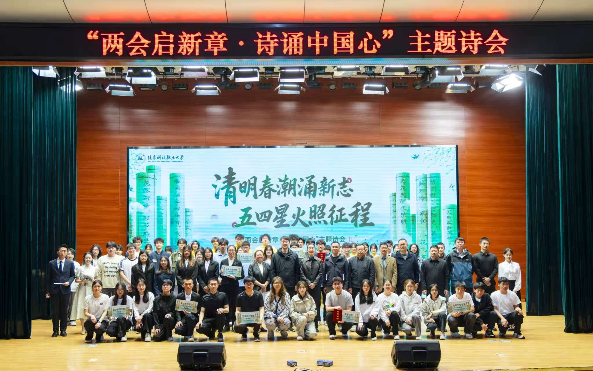 4月8日下午,北京科技职业大学“两会启新章·诗诵中国心”清明主题诗会在图书馆报告厅隆重举行。学校党委副书记刘蓉,校团委负责人及各二级学院党委副书记出席活动,与来自全校各学院的师生代表共同见证了这场诗意盎然的文化盛宴。本次活动由学校团委主办,经济管理学院、图书馆承办。