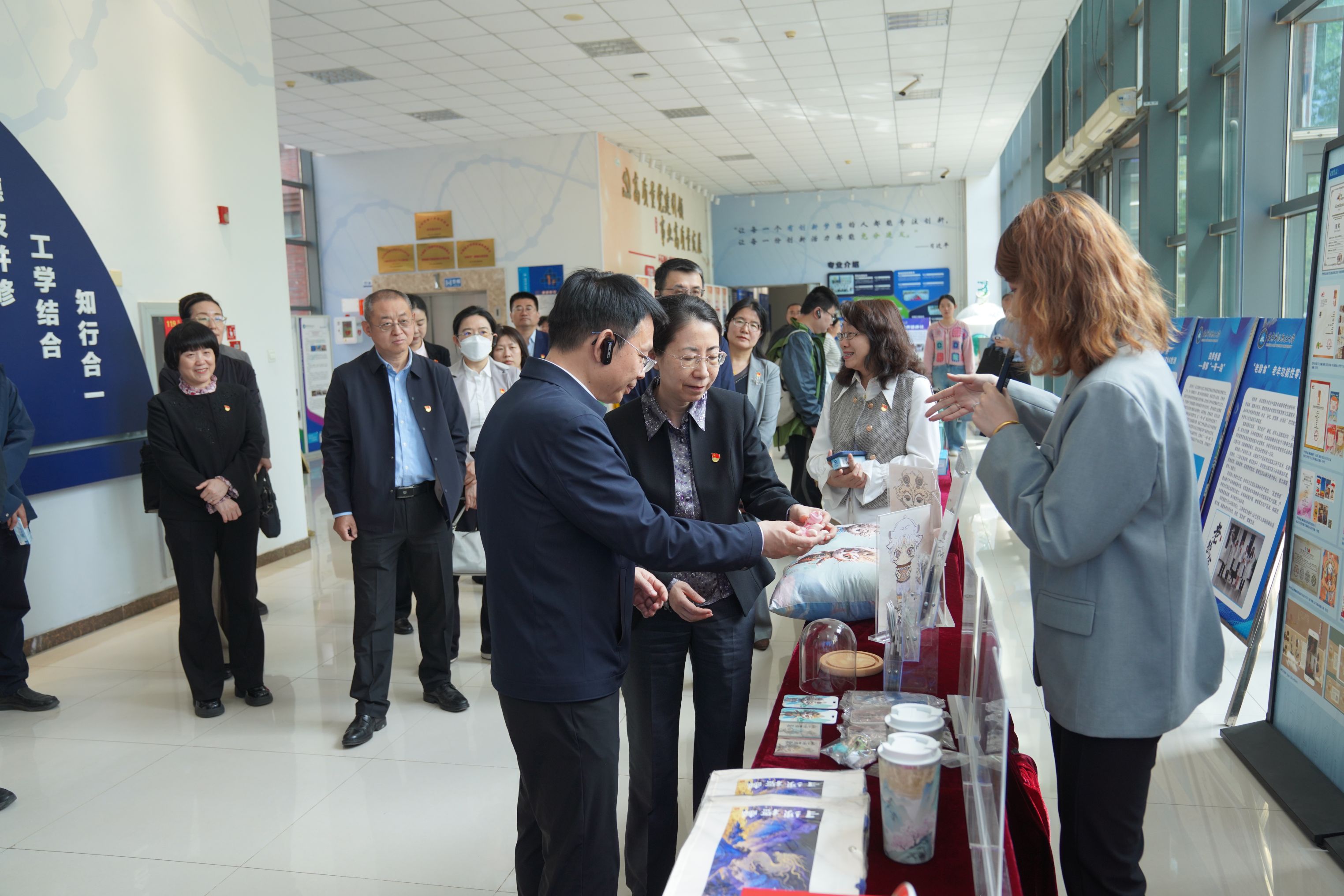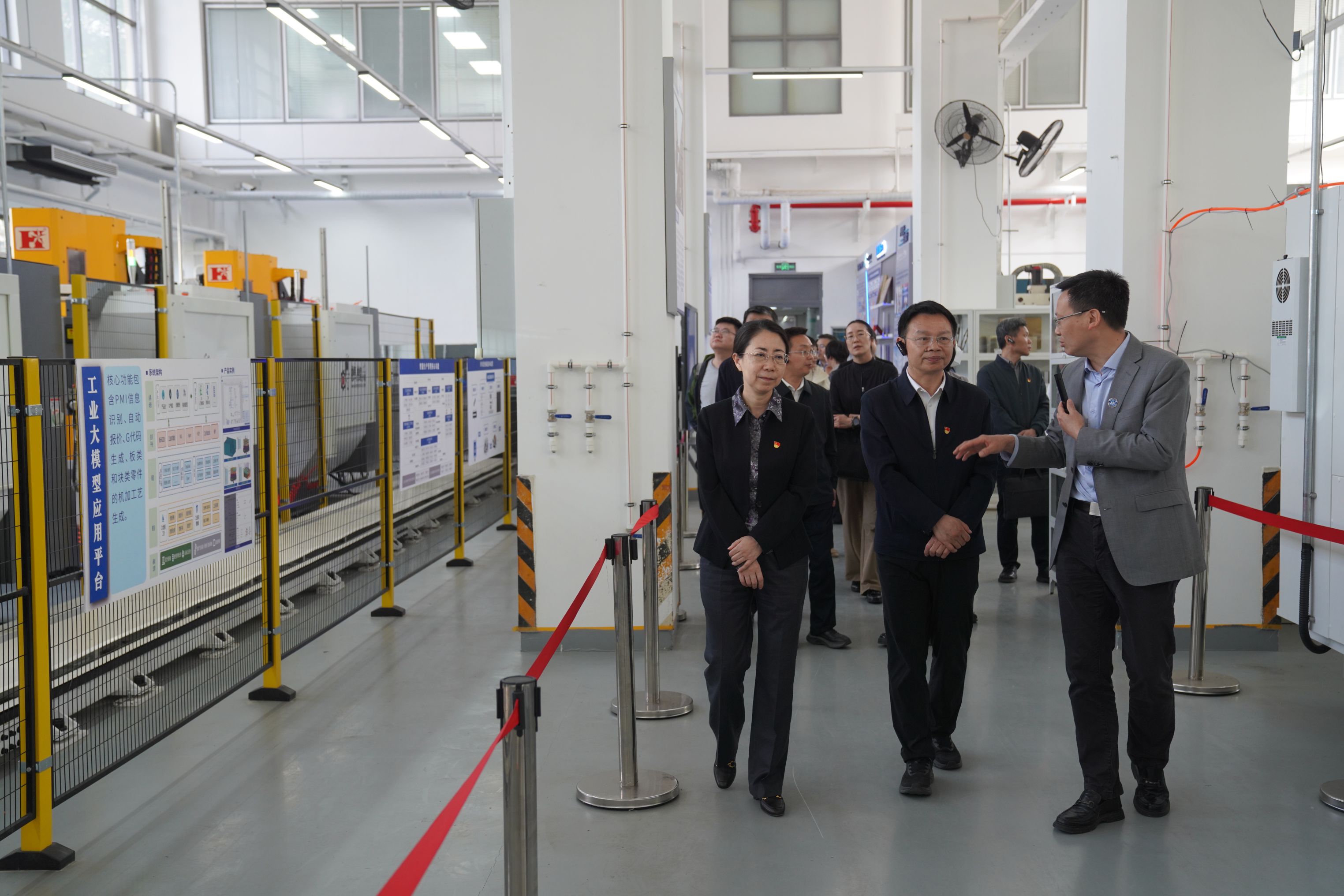 座谈会前,冯洪荣一行在董竹娟等校领导陪同下,先后实地考察学校飞机维修实训基地、生物工程学院和艺术设计学院教学成果展位、集成电路中试基地、智能网联汽车产业学院、先进制造实训基地(蚂蚁工场),详细听取学校在航空维修、生物医药、艺术设计、集成电路、智能制造等特色领域的人才培养体系建设、产教融合创新实践及教科研成果转化等情况介绍,对学校职业本科办学成效给予高度认可。