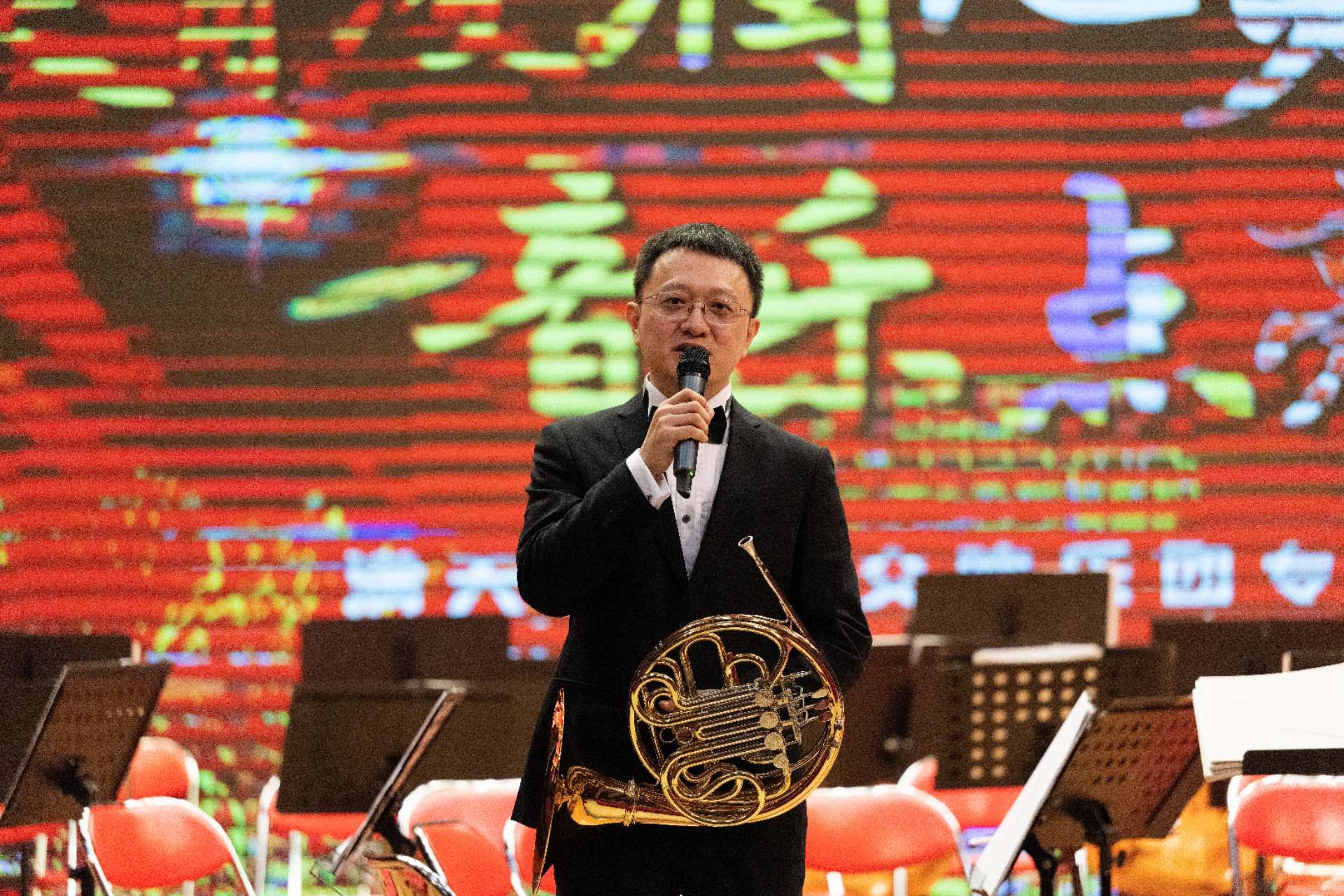 作为本场音乐会的亮点环节,乐团艺术家在曲目间隙分享艺术感悟与人生历程,以亲身经历诠释热爱与坚守。原301医院梁浩教授以医者视角,生动诠释音乐疗愈心灵、滋养身心的独特价值;北京控制工程研究所高级工程师胡大为现场讲述改良圆号并斩获专利的创新故事,用实践经历激励同学们勇于探索、追求卓越。