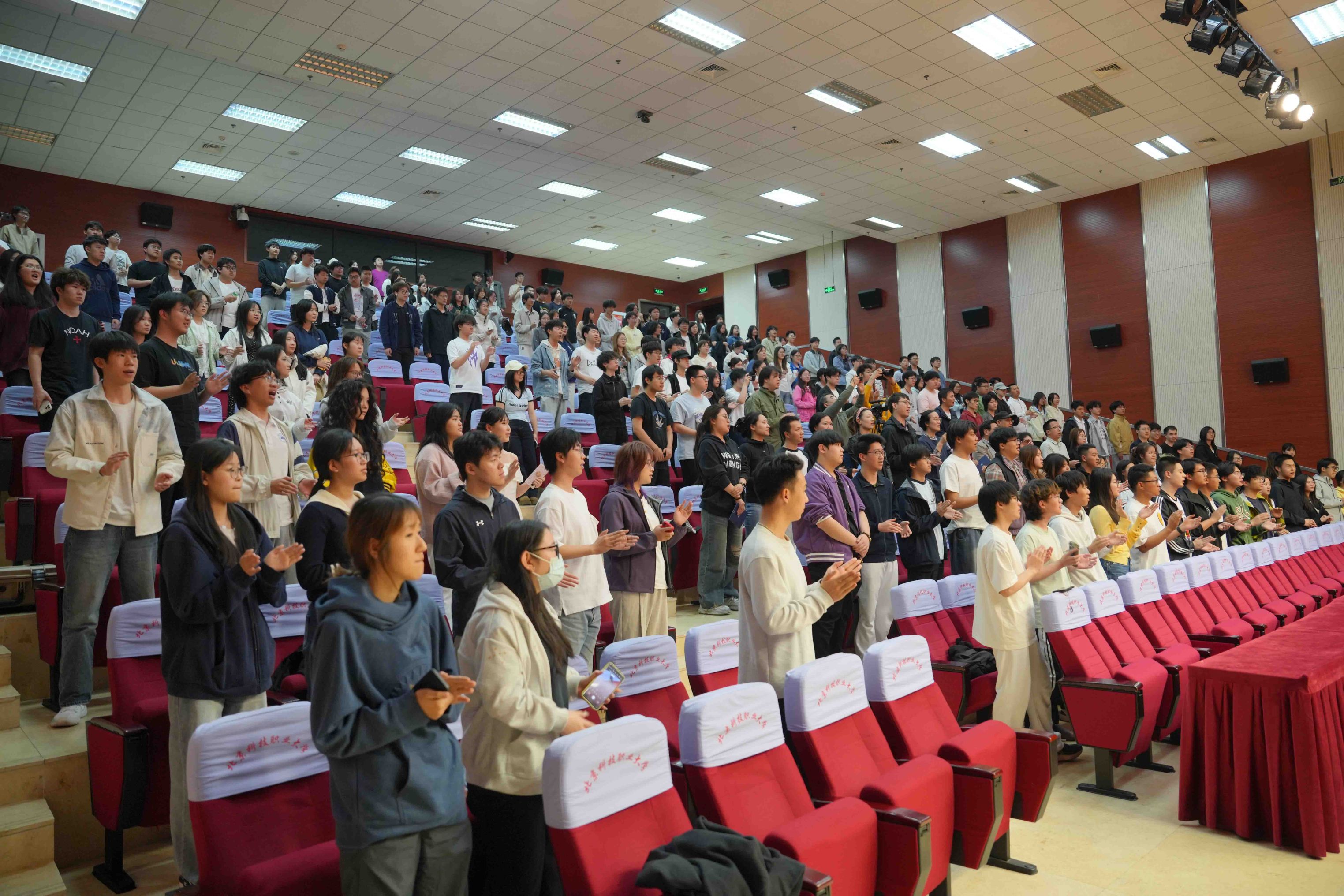 音乐会以气势恢宏的《红旗颂》拉开序幕,旋律昂扬,瞬间点燃全场。《卡门》选段热情奔放,《红色娘子军》选段再现革命先辈飒爽英姿,《海霞组曲》选段、《匈牙利舞曲第五号》轻快灵动,《浪漫曲》温婉抒情,《花儿为什么这样红》余韵悠长,终曲《拉德斯基进行曲》欢快激昂,全场观众随乐击掌。演出尾声,乐团返场《歌唱祖国》,全场师生起立齐声高唱,家国情怀激荡全场,将这场美育思政大课推向高潮。