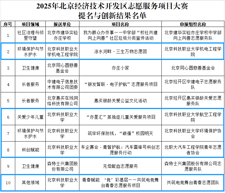 在2025年北京经济技术开发区志愿服务项目大赛中,我校凭借扎实的实践基础和高质量的项目设计,从众多参赛单位中脱颖而出,斩获主赛道金奖1项、银奖1项,品牌创建赛道入围项目2项,另有5个项目获得提名与创新奖。