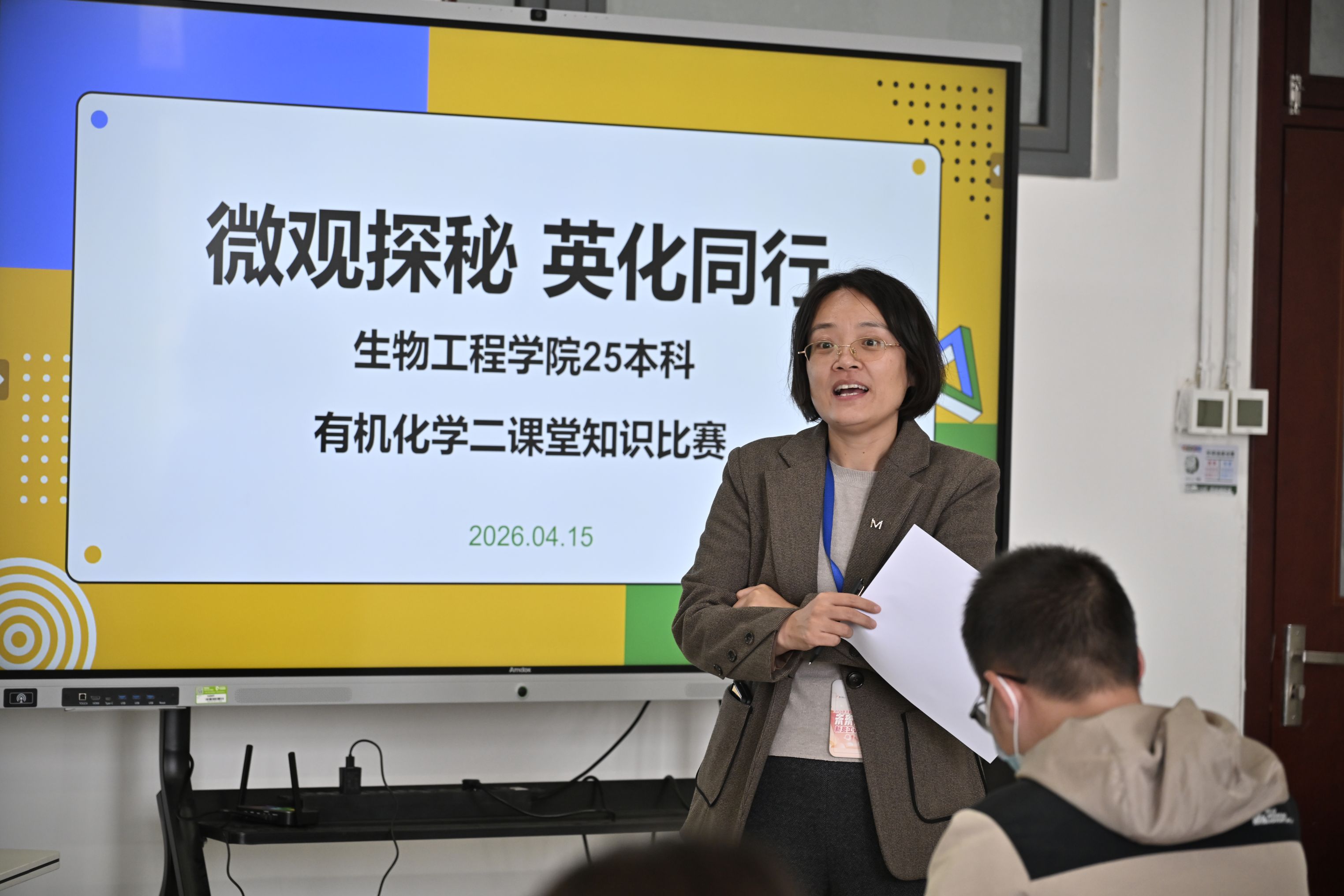 第二阶段采用比赛形式。为进一步检验学习成果、营造以赛促学的良好学风,4月15日学院举办了球棍模型比赛,在固定题库环节,选手们根据屏幕显示的有机物英文名称,快速反应、精准操作,熟练搭建对应球棍模型,展现出扎实的专业基础与高效的动手能力;在拓展挑战环节,评委现场命题,进一步考验同学们的知识灵活运用能力与临场应变水平。