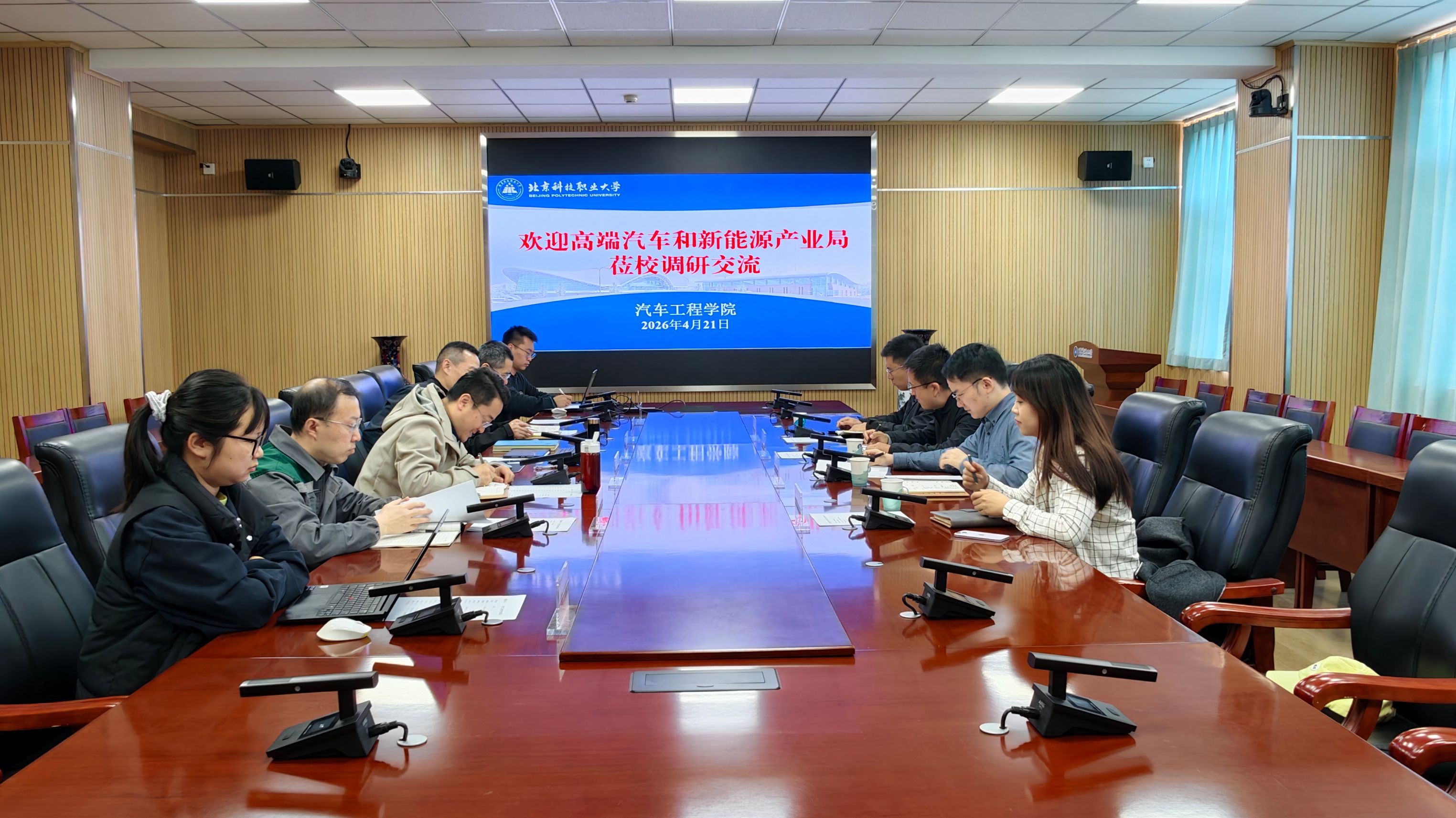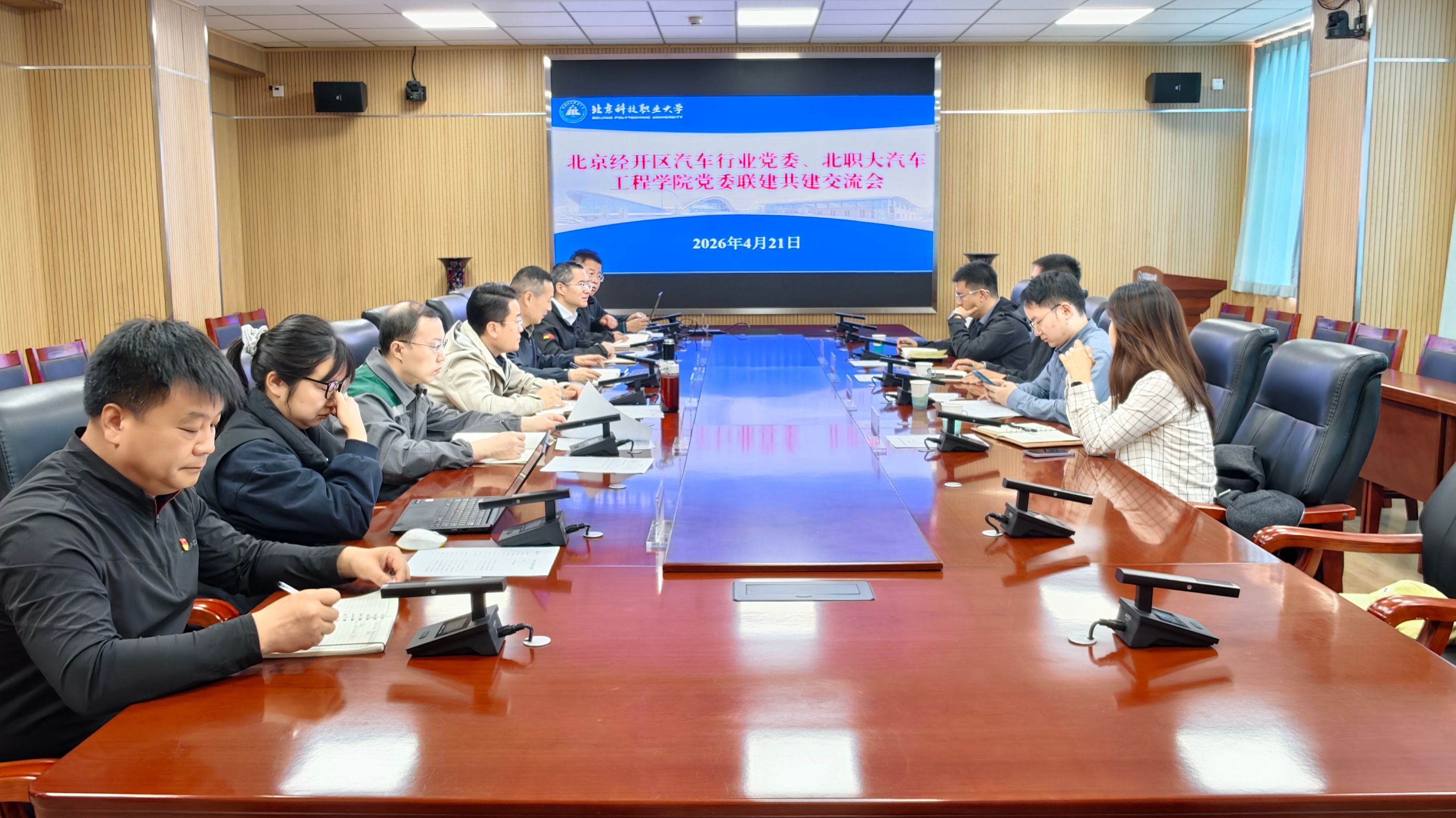 为精准对接北京经开区汽车产业布局、深化产教融合并服务区域高精尖产业发展需求,4月21日上午,北京经济技术开发区汽车行业(以下简称经开区汽车行业)党委与学校汽车工程学院党委召开联建共建交流会。经开区汽车行业党委书记、高端汽车和新能源产业局副局长柴进及相关部门负责人,汽车工程学院党委副书记、院长朱青松,副院长吕江毅、宋建桐及学院骨干教师代表参加了会议。