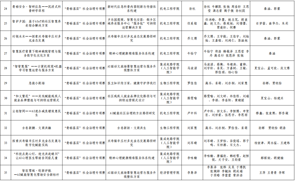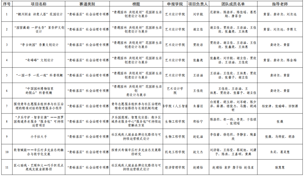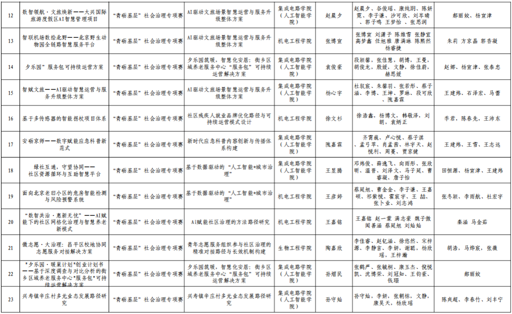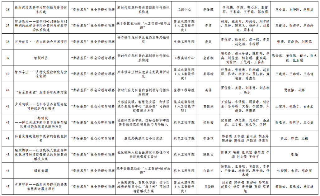 根据团市委关于本届“挑战杯”市赛“揭榜挂帅”专项赛推报的有关要求,拟推荐以下47项作品参加“青砺基层”社会治理专项赛,现将作品及团队信息公示如下(排名不分先后):