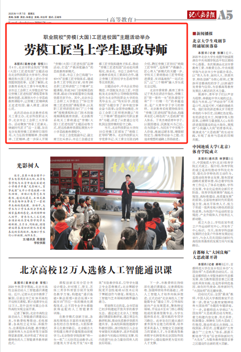 2025年11月7日,现代教育报刊发了北京市职业院校“劳模(大国)工匠进校园”主题活动在我校举办的内容。以下是全文: