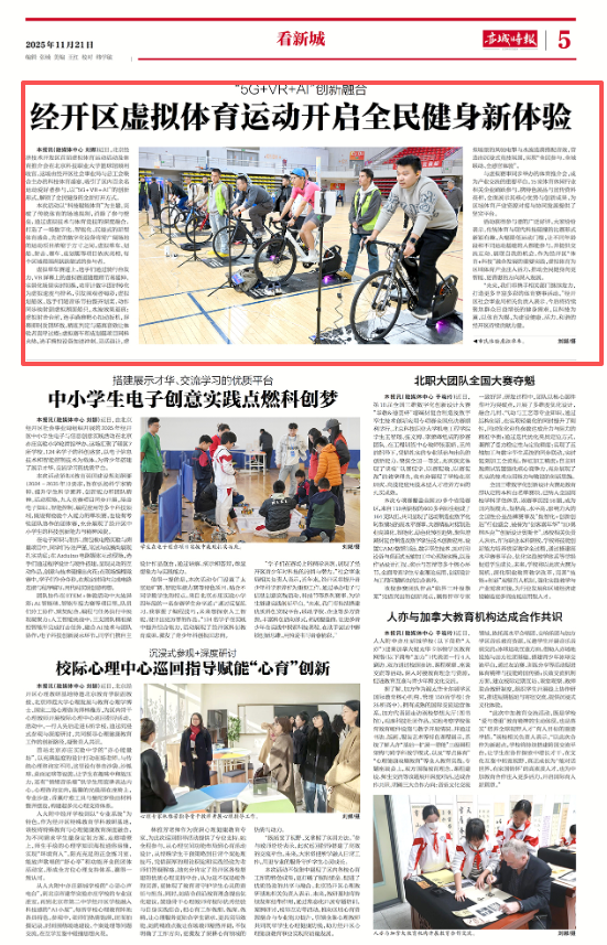 2025年11月21日,亦城时报刊发了北京经济技术开发区首届虚拟体育运动活动及体育推介会在我校举办的内容。以下是全文: