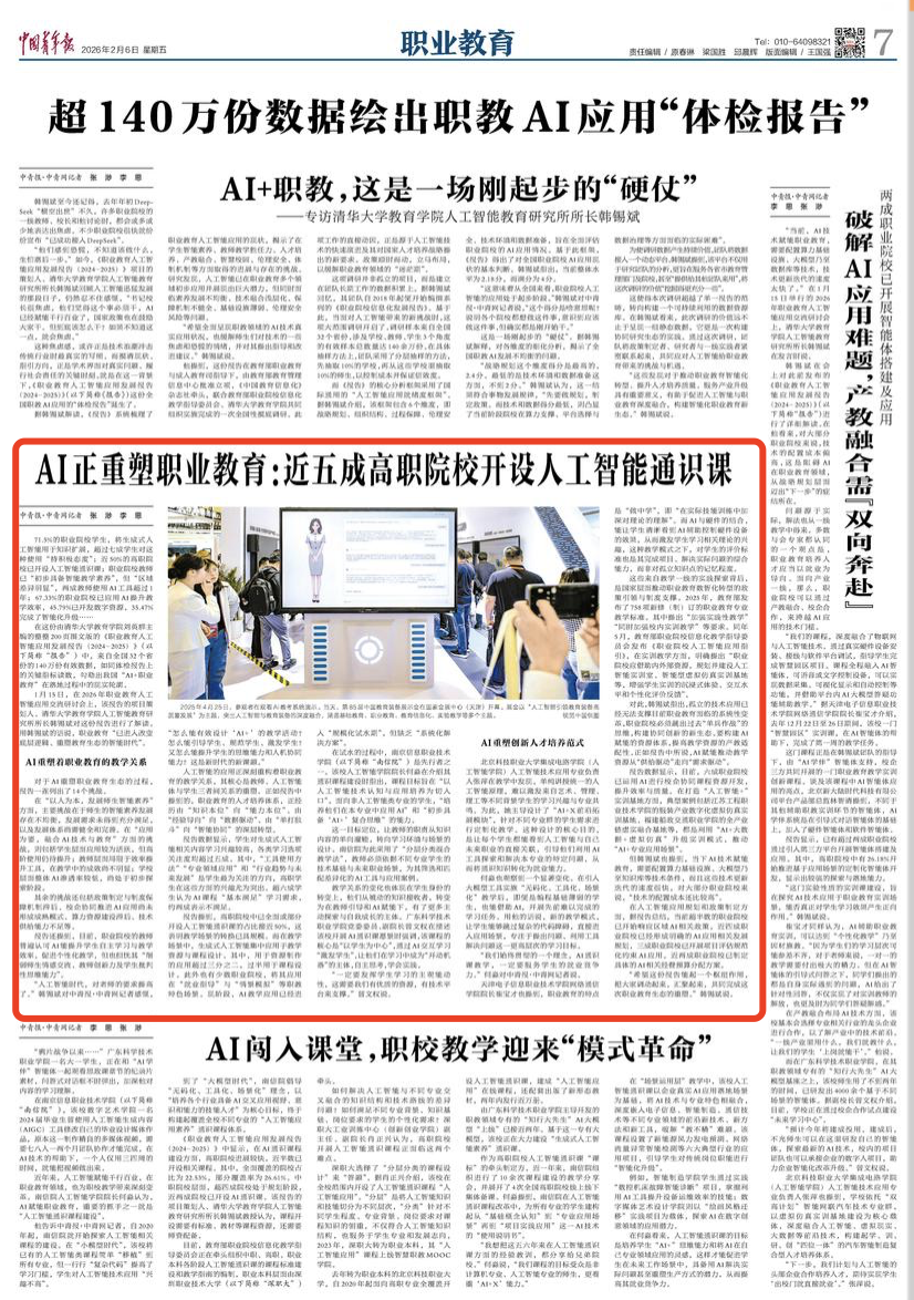 【中国青年报】AI正重塑职业教育:近五成高职院校开设人工智能通识课
