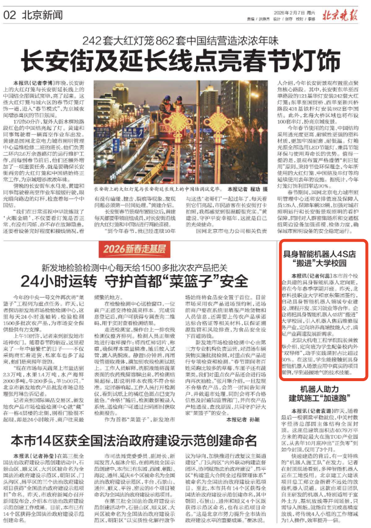 2026年2月7日,北京晚报报道了我校与京东集团签约,共建具身智能机器人定向班的内容。以下是全文: