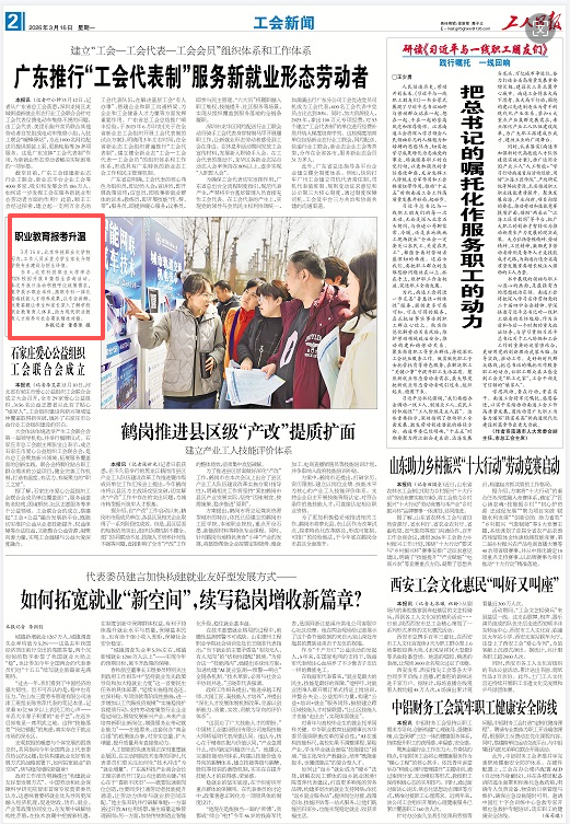 2026年3月16日,工人日报刊发了我校举办校园开放日活动的内容。