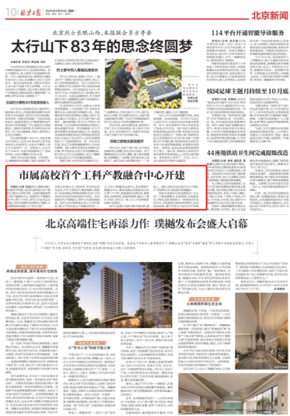 2025年9月29日,北京日报报道了我校产教融合工程中心项目正式开工的内容。以下是全文: