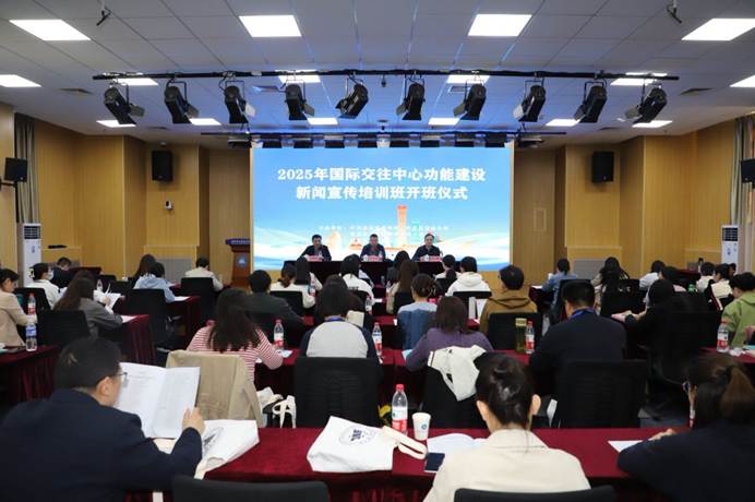 为进一步提升北京市国际交往中心功能建设能力和对外工作宣传水平、更好对外展示首都国际形象,讲好北京国际交往中心功能建设故事、首都对外工作故事、北京外事服务高质量发展故事,4月22日至25日,受北京市人民政府外事办公室委托,“2025年国际交往中心功能建设新闻宣传培训班”在我校举办。市委外办市政府外办二级巡视员张长春和学校副校长陈江锋出席开班仪式,来自市委宣传部、市教委、中新社等全市近50家相关单位的60余名学员参加培训。