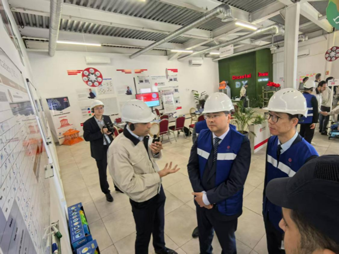 在中信戴卡摩洛哥分公司,代表团参观了企业展厅和生产线,并与中信戴卡摩洛哥分公司总裁Badr Lahmoudi亲切交流。Badr Lahmoudi介绍了企业发展情况和用工需求,王伟校长在致辞中表示学校将携手中信戴卡共同通过“中文工坊”项目,为摩洛哥分公司属地员工提供“中文+职业技能”培训,提升其跨文化交流能力与职业技能,服务中资企业海外发展需求,提高员工中文水平和生产技能,助力摩洛哥青年更好规划自己的职业生涯。