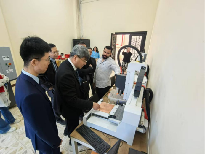 在赫利奥波利斯大学,校长Helmy Abouleish接待了代表团,双方就学生来华学习、两国学生的文化交流项目开展讨论,并交流了美育课程开设的经验。会后代表团参观了学校的实习实训环境。