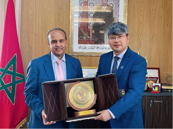 在摩洛哥信息设计学院(School of Information Design),校长Abdelaziz EL Kayloubi接待了代表团,双方交流了学生来华留学项目。