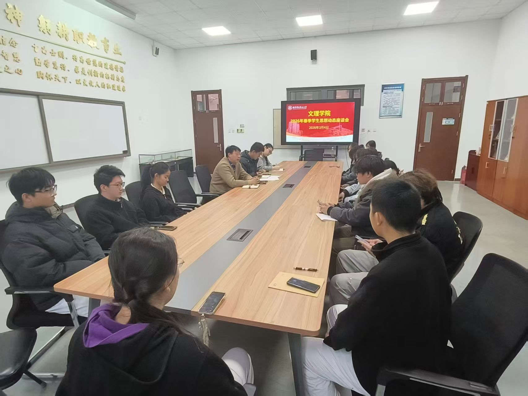 3月4日,文理学院召开2026年春季学期学生思想动态调研座谈会。学院党总支副书记刘锋、辅导员及中、高职各班学生代表参加会议。座谈会上,同学们围绕寒假见闻、社会实践、时事热点及新学期规划等议题踊跃发言。在个人成长与技…