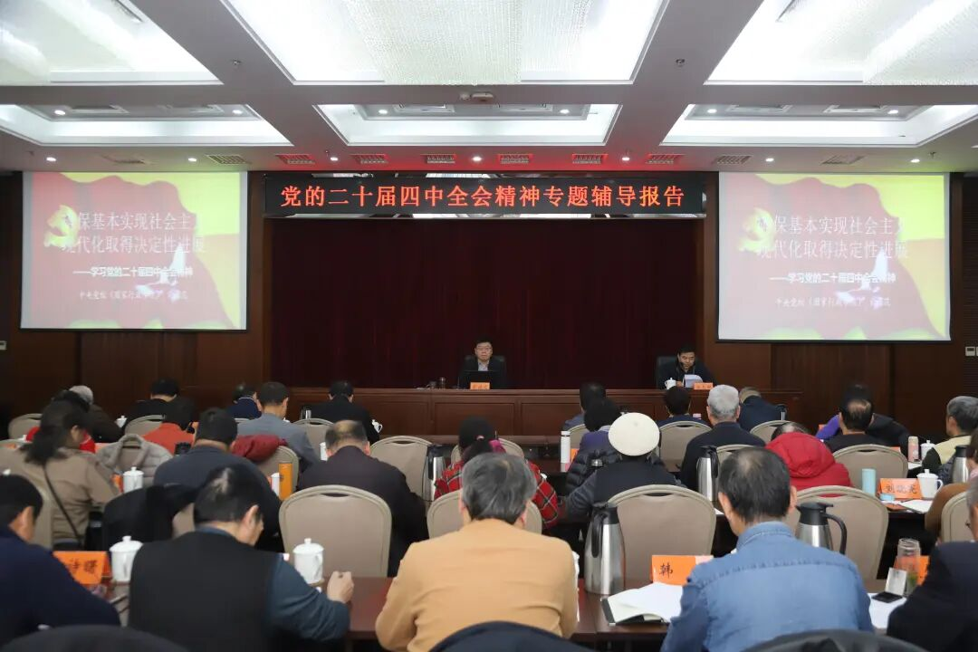 报告会围绕“确保基本实现社会主义现代化取得决定性进展”这一主题,从实践起点与历史方位、总体思路与重大原则、主要目标与战略任务、统帅引领与根本保证四个方面,对全会精神进行了系统深入的解读。机关离退休干部党支部党员和特邀党建组织员全程认真聆听,深入领会精神实质。