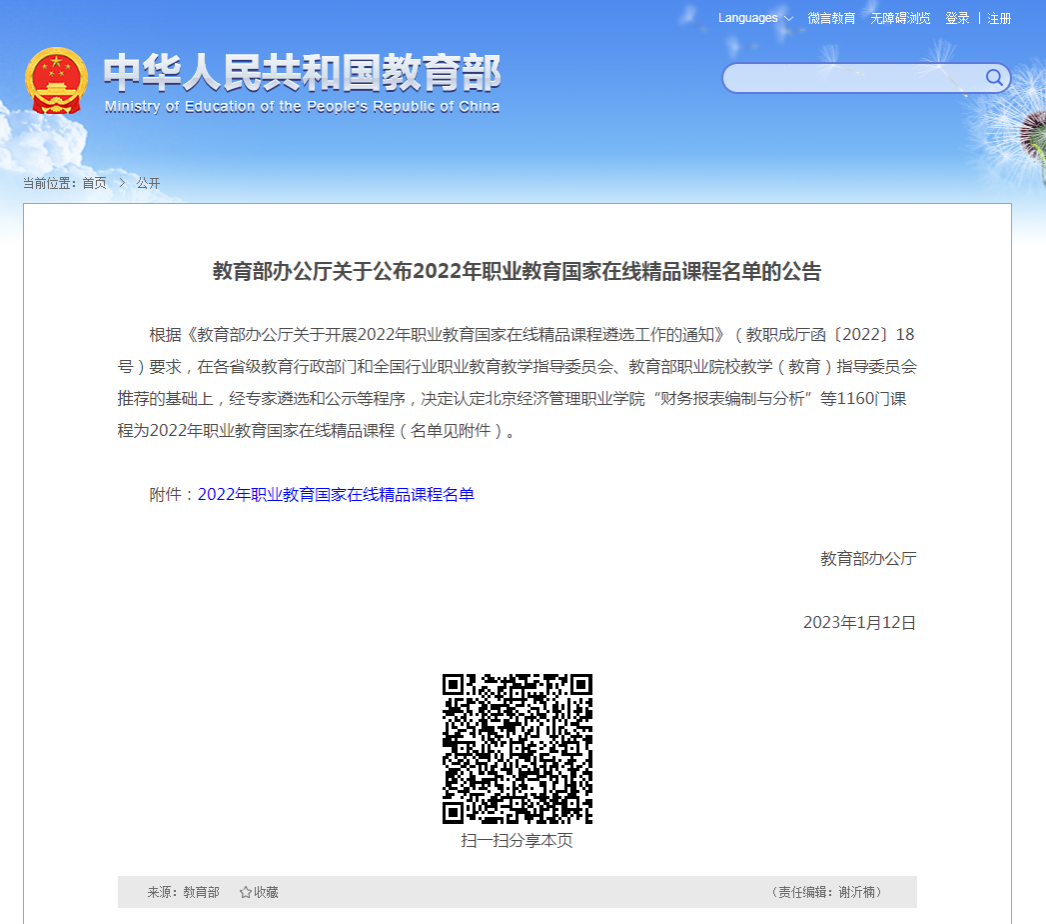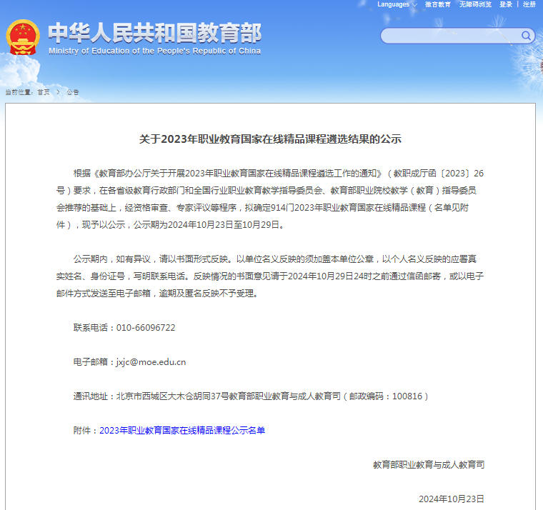 2023年职业教育国家在线精品课程结果公示