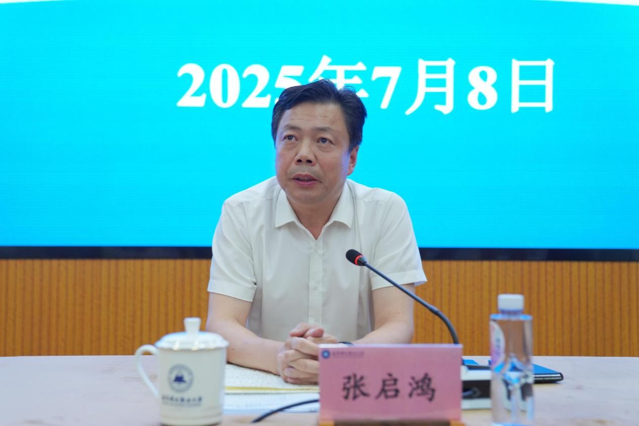 张启鸿对本次会议的重要意义和取得成效给予充分肯定,并深入阐述了新形势下加强专业建设和人才培养工作的紧迫性。他着重强调,第一,人才培养质量提升和就业质量提高是学校发展的生命线与底线,这一理念必须贯穿学校发展始终;二级学院要切实组织学习并制定详尽的实施方案,将各项要求落到实处,以培养具备大国工匠精神的高素质技术技能人才为己任,勇立潮头,积极开创学校专业建设和人才培养的崭新局面。第二,“招-培-就”联动的核心在于提升专业建设和人才培养质量,每位教师都要紧跟时代步伐,不断提升专业建设意识;教师只有主动适应产业新变化,才能在教学中为学生传递前沿知识与技能,培养出符合时代需求的人才。第三,专业建设和人才培养工作需要各部门各司其职、协同发力,招生计划的制定要与人才培养目标相匹配,职能部门之间要进行高效的沟通协调,形成工作合力,确保各项人才培养工作有序推进。
