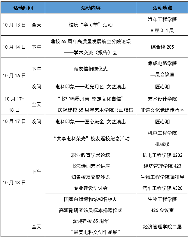 校友系列活动由各二级学院安排对接,主要集中在10月18日下午,具体活动内容、时间等请咨询各二级学院联系人。