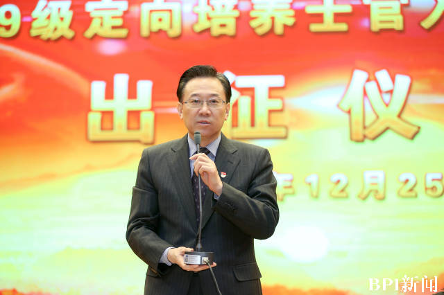 扬帆启航新征程,阔步奔赴绿军营。院长姚光业宣布了2019级定向培养士官入伍出征命令,标志着我校培养的第六批后备士官即将按照分配命令奔赴部队报到,开启崭新的军旅生涯,为实现建军百年奋斗目标贡献青春智慧与力量。