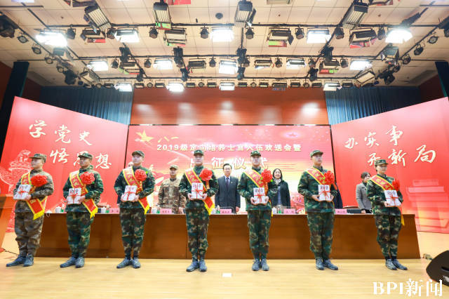 携笔从戎报家国,启程担当新使命。12月25日,我校2019级定向培养士官入伍欢送会暨出征仪式在图书馆报告厅隆重举行。院长姚光业、党委副书记王玮、朝阳区人民政府征兵办公室干部关震东出席会议。