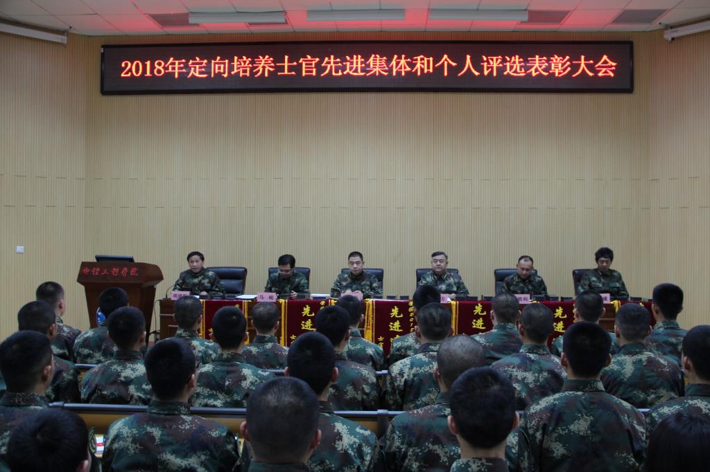 12月24日下午,2018年定向培养士官先进集体和个人表彰大会在电信工程学院报告厅举行。士官学院负责人、机电工程学院、汽车工程学院、电信工程学院党总支副书记、士官学院全体干部、部分辅导员、士官生代表参加了会议。