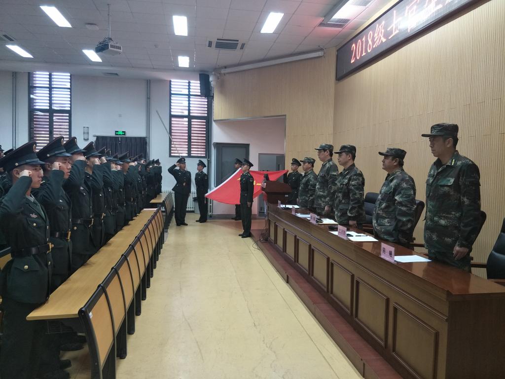 11月16日, 2018级士官生入队仪式在电信学院报告厅隆重举行。士官学院、相关二级学院老师和2018级全体士官生参加入队仪式。