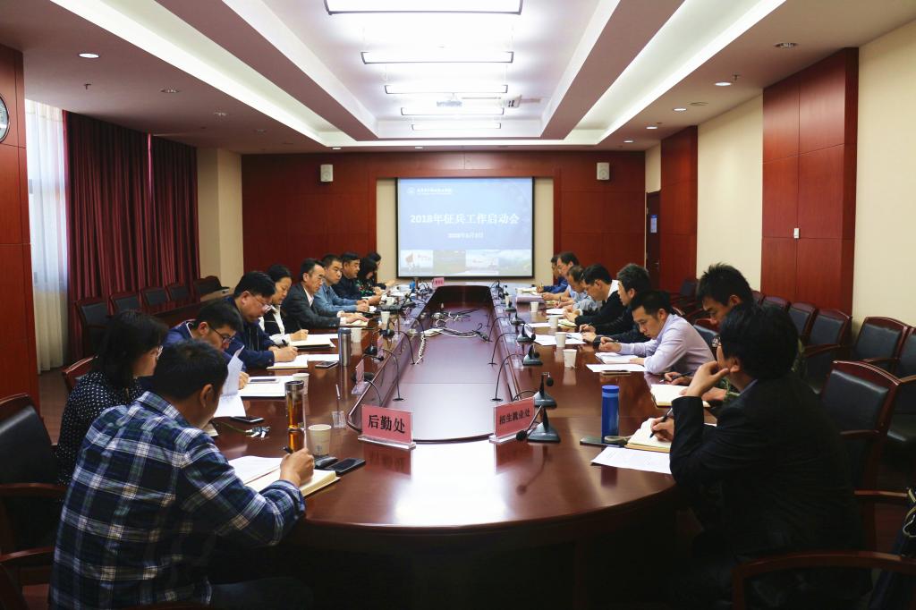 5月3日上午,学校召开2018年征兵工作启动会,党委副书记赵锋出席会议。征兵工作领导小组全体成员单位负责人参加会议。