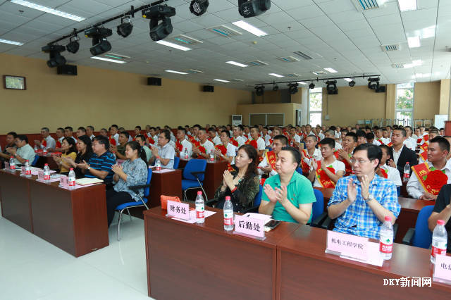学校征兵工作领导小组成员,辅导员代表、全体入伍学生及家长代表参加欢送会。党委武装部部长高强主持会议。