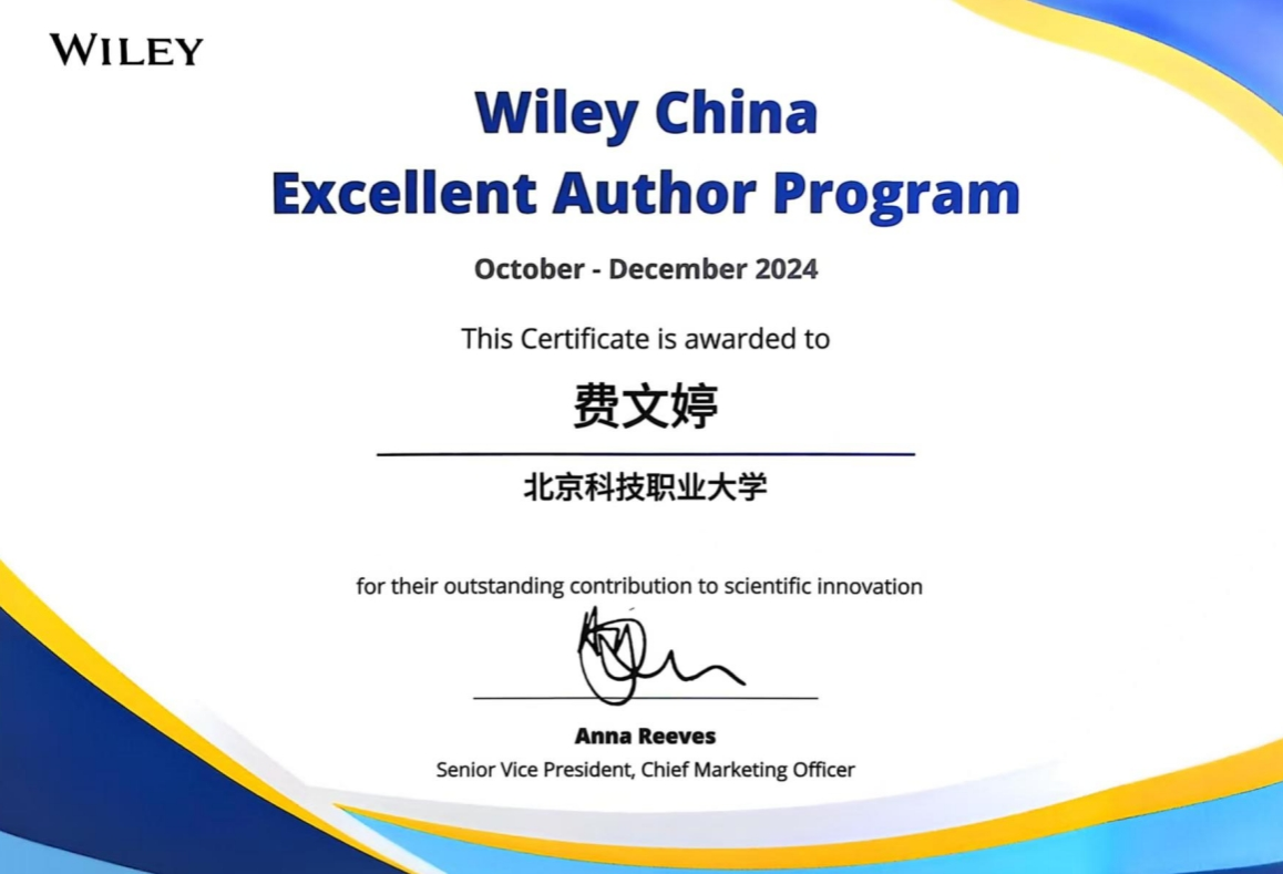 我校生物工程学院费文婷老师发表于期刊CHEMICAL BIOLOGY & DRUG DESIGN中的论文NMC‐4 Ameliorates Depression‐Like Behavior and Neuroinflammation Caused by Chronic Unpredictable MildStress在发表后的三个月内获得了395次下载,受到全球学者的广泛关注,在该期刊中国作者2024年第四季度发表文章三月内下载量中位列前茅,获得“Wiley China Excellent Author Program”荣誉称号。不仅如此,费文婷老师还获得了“2024中国知网高被引学者Top5%”荣誉称号。该称号的遴选范围为近十年发表至少一篇PCSI指数大于1.65期刊或会议论文的学者,并且总PCSI指数之和位于前5%。