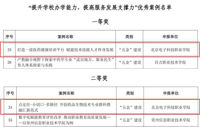 近日,我校生物工程学院报送的2项案例入选全国高等职业学校校长联席会议“提升学校办学能力,提高服务发展支撑力”优秀案例名单,《打造一流医药健康培训平台 赋能技术技能人才终身发展》获得优秀案例一等奖,《点定位-小切口-多路径开创药品生物技术专业群科教融汇新范式》获得优秀案例二等奖。