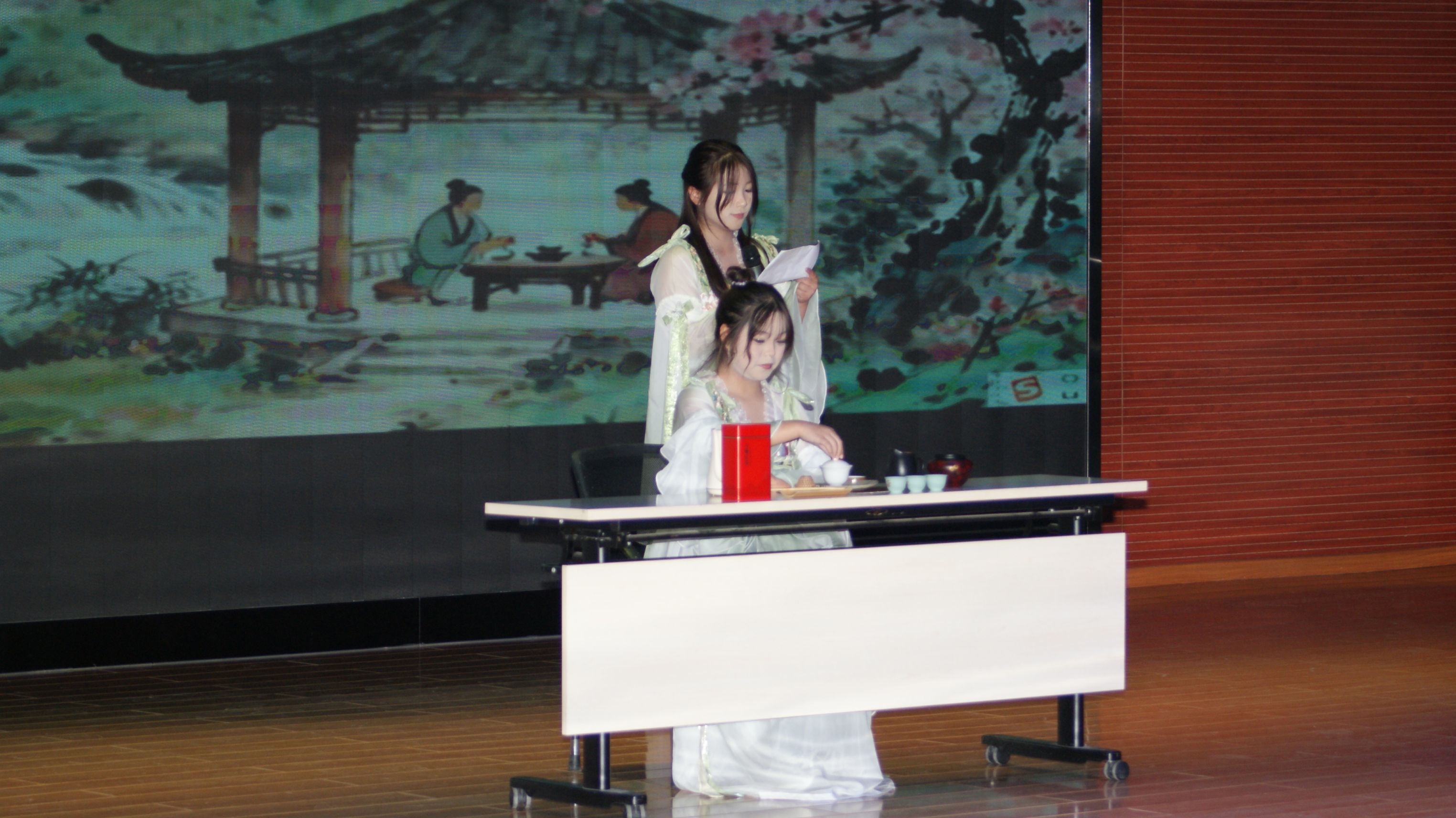 从确定内容到翩然登台,不过三日光阴。张娴静与吴佩玲两位同学从零起步,晨昏不辍,将每一个落盏、注水、分茶的动作,反复揉捻成身体的记忆;茶社的学长学姐亦倾情相伴,从仪态到心意,将茶道之美手手相传。这是一场青春的接力,也是一次温暖的共修。