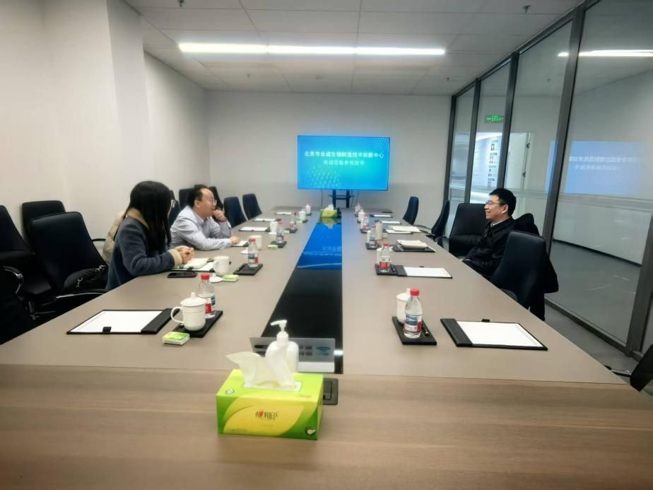 2月11日,生物工程学院陈亮院长带队赴北京市合成生物制造技术创新中心(以下简称“创新中心”)调研交流。北京市合成生物制造技术创新中心负责人王斌教授及技术团队热情接待,引导介绍创新中心生物发酵中试、生物反应中试、生物分离及转化中试、分析测试四个支撑平台,同时就生物合成制造技术的应用发展进行详细论述,并展开座谈研讨,双方围绕平台共建、科研合作、行业标准制定及人才培养模式等议题开展了深入探讨。