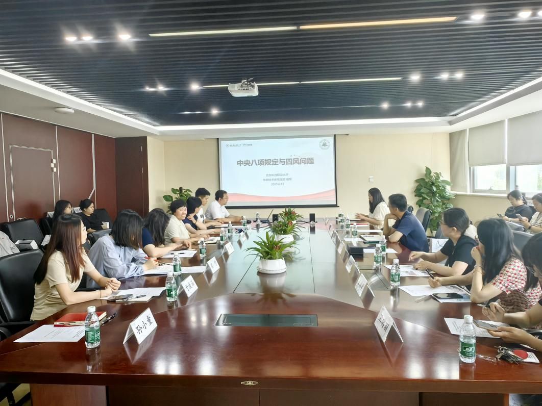 在理论学习专题活动中,北京科技职业大学生物技术系党支部书记杨军以“深入贯彻中央八项规定精神学习教育”为主题,为全体党员上了一堂生动而深刻的党课。党课中,书记深入解读了中央八项规定的核心要义,强调了廉洁自律在日常工作和生活中的重要性,进一步提升了党员们的廉洁意识和党性修养。通过杨军书记的深入讲解,大家对中央八项规定精神有了更透彻的理解,也更加明确了廉洁自律在日常工作和生活中的重要意义,进一步提升了党员们的廉洁意识和党性修养,激励着大家在今后的工作与生活中,以更高的标准严格要求自己,将中央八项规定精神内化于心、外化于行,以实际行动为党旗增光添彩 。