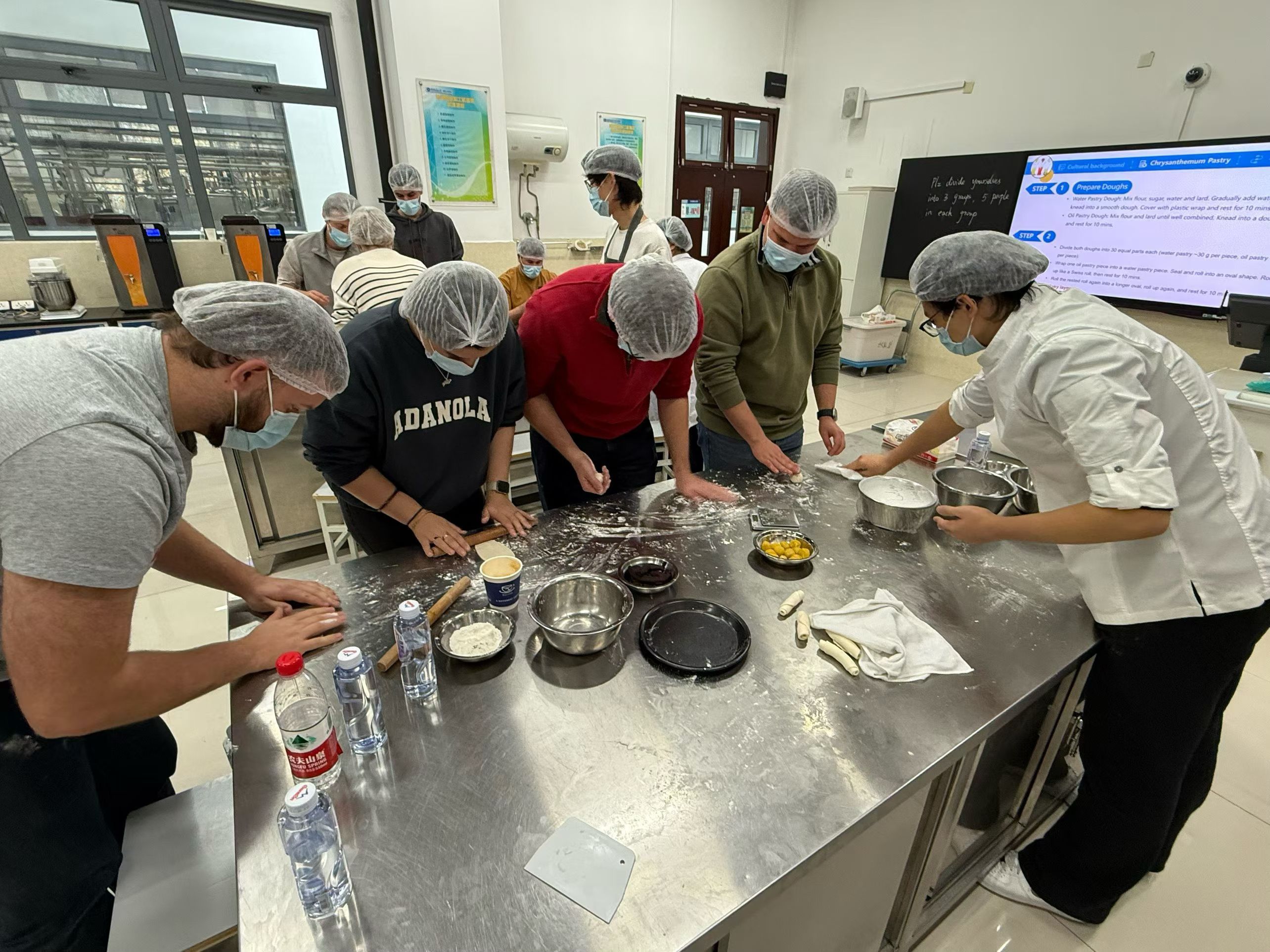 11月7日,学员们参与了富有中国特色的传统食品加工课程,时值重阳节刚过,课程特别选取了寓意敬老、吉祥的传统节令点心——菊花酥,让英国学子在亲手制作中,深刻体会中华节俗文化的内涵与魅力。此外,学员们还一同制作了另一道京味名点——驴打滚,在动手实践中全方位感受中国饮食文化的多样性与趣味性。