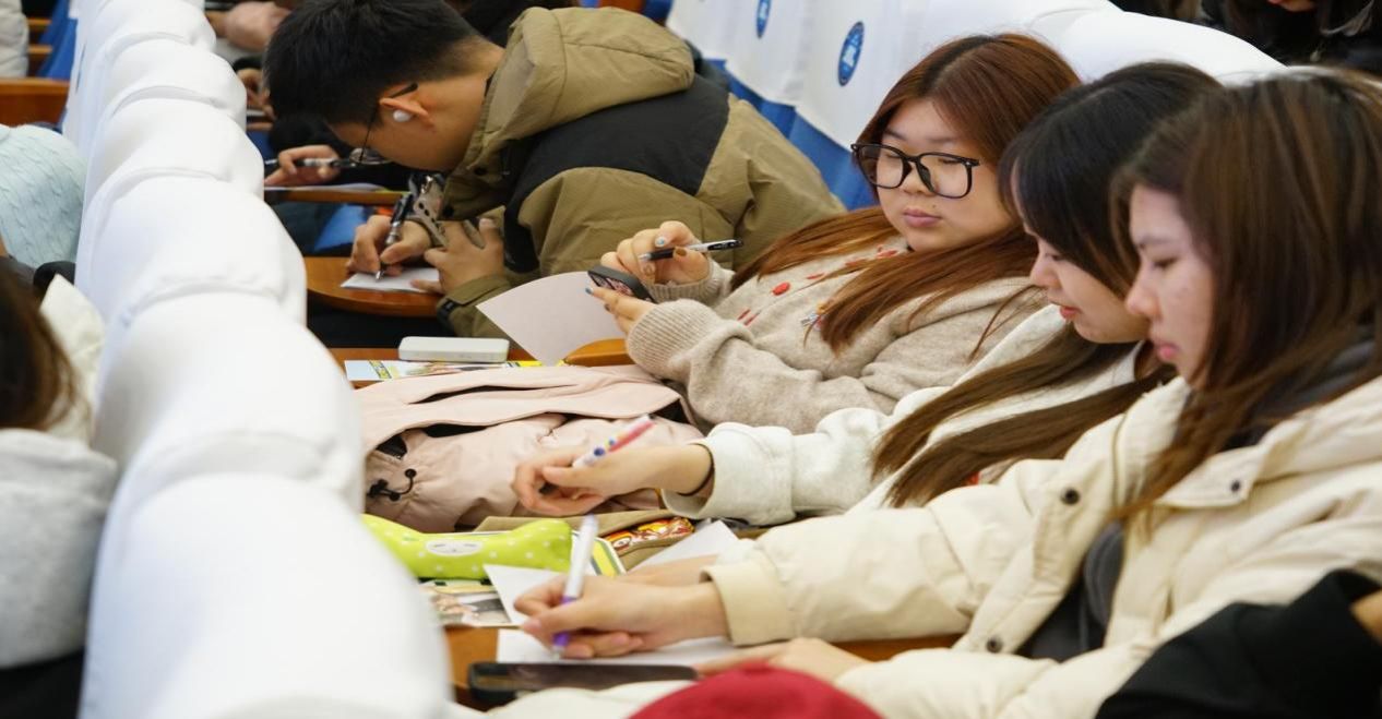 在职业规划环节,重庆智飞生物制品股份有限公司京津地区HRBP张梦伟以《医路逐梦·职向未来》为题展开分享。她提出“兴趣+能力+需求=高分区”的自我洞察逻辑,通过真实案例拆解大学各阶段成长重点,从专业基础夯实、技能证书备考到企业实习实践,为学子勾勒出可落地的职业规划路径。互动环节中,“未来画像盲盒”活动引发热烈参与,同学们纷纷写下毕业理想状态,在畅想中锚定成长方向。
