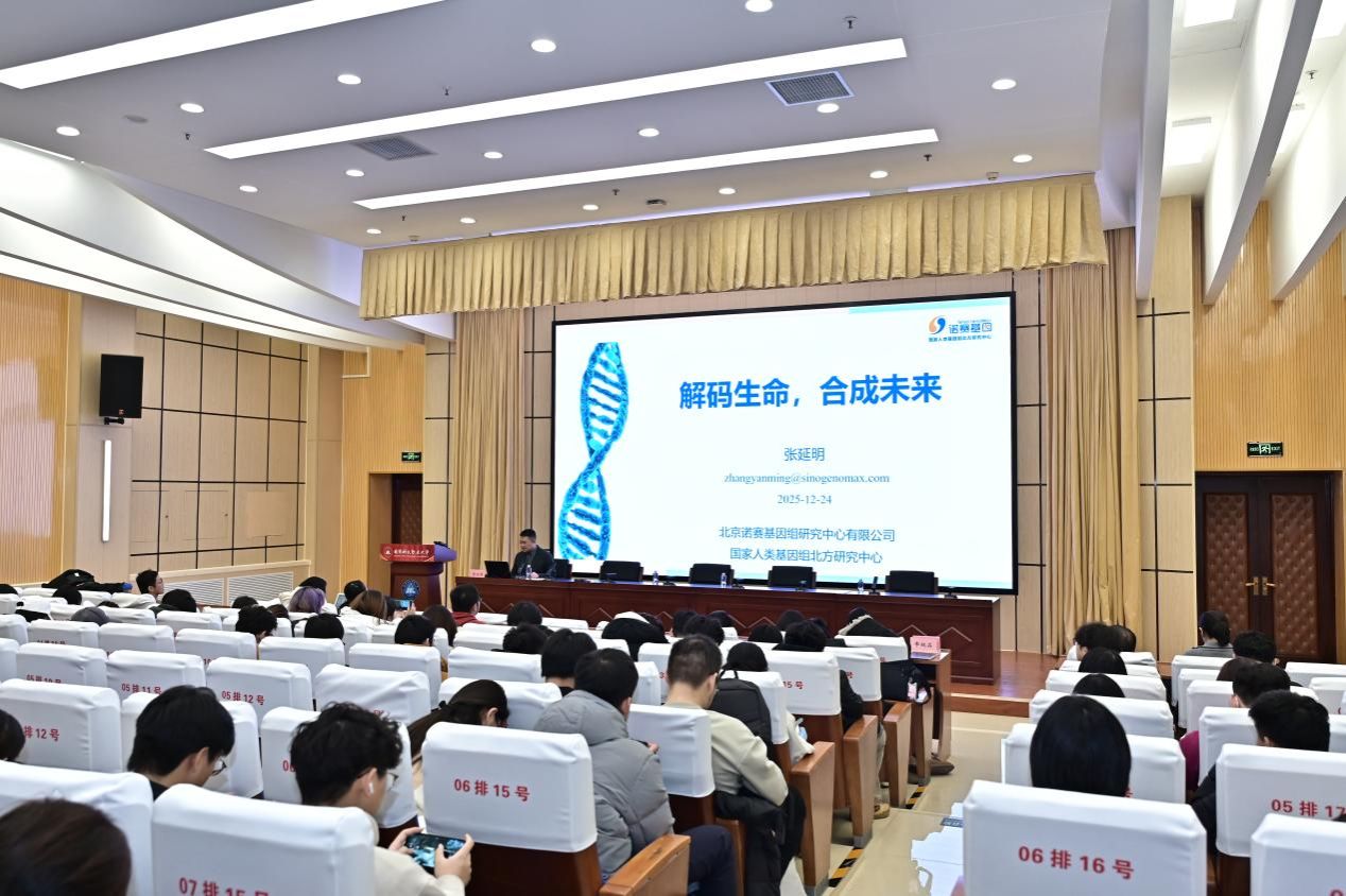 作为工作站核心导师,张延明以《解码生命,合成未来》为题作专题报告。他系统介绍了诺赛基因的发展历程与科研成就,并着重围绕测序技术发展史,清晰梳理了从第一代 Sanger测序法到第四代纳米孔测序技术的迭代脉络,通过对比不同测序平台的原理、读长与通量差异,让在场学子直观感受生命科学技术的飞速发展。在合成生物学专题部分,他深入阐释了“第三次生物科学革命” 的核心内涵,结合医疗健康、绿色化工、农业食品等领域的应用案例,展现了合成生物学“设计生命、改造自然”的强大潜力,并结合全球近 500 亿美元的市场规模预测,为同学们解读了行业发展前景与就业机遇。