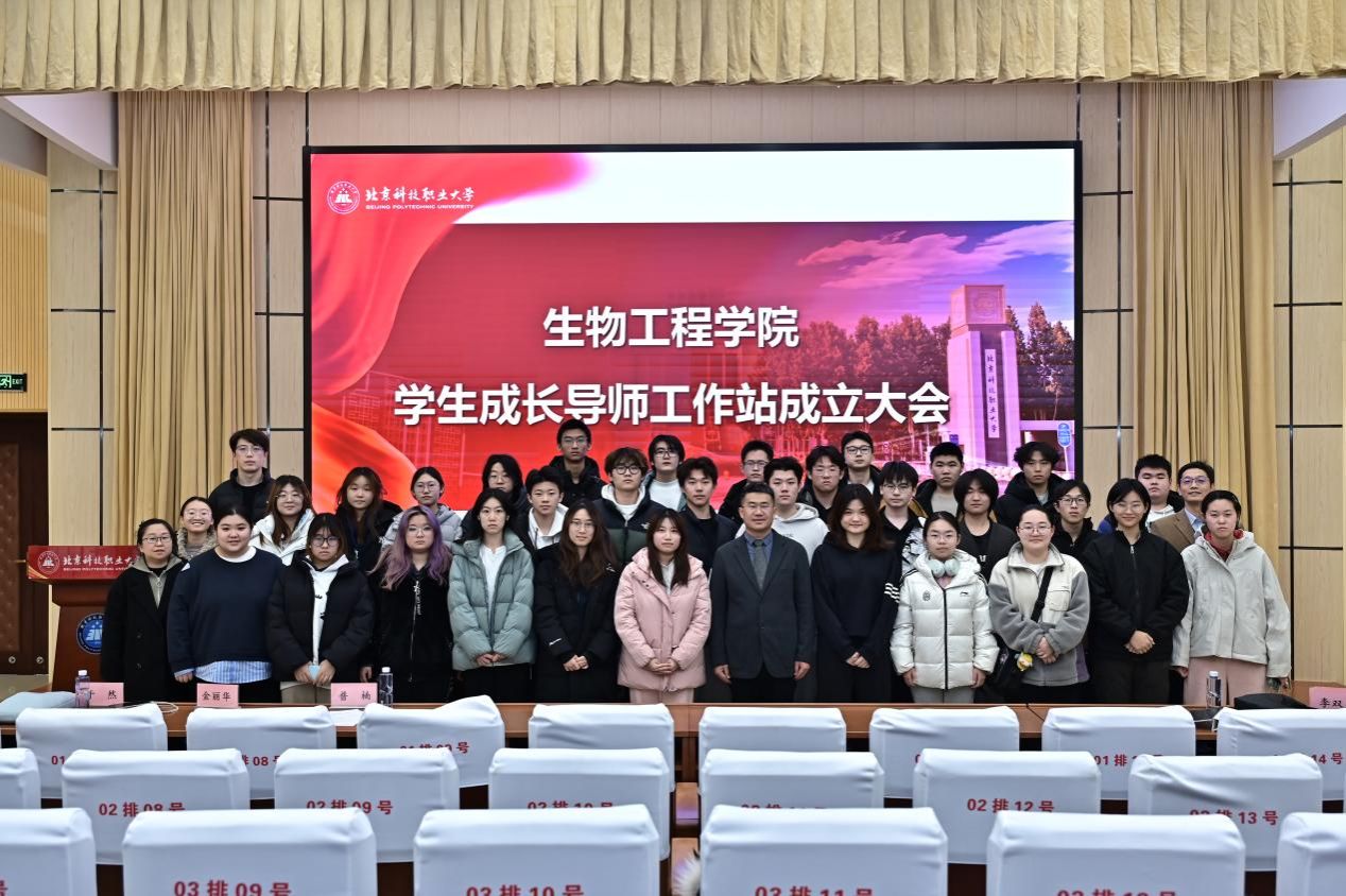 为深化 “立德树人” 育人理念,搭建校企协同育人平台,助力学子深耕生命科学领域、明晰专业发展方向,12 月 24日下午,北京科技职业大学生物工程学院学生成长导师工作站成立大会暨醍醐讲堂成功举办。北京诺赛基因组研究中心有限公司(国家人类基因组北方研究中心)副总经理、学校精融书院工匠导师张延明,生物工程学院党委书记齐友明,副院长李双石,学院辅导员、班主任、教师代表与学生代表参会,大会由生物工程学院党委副书记刘青山主持。